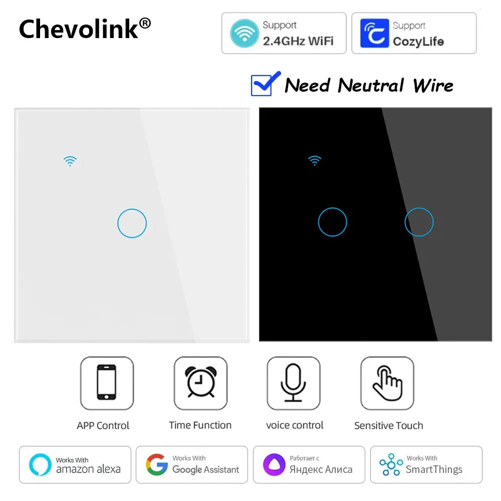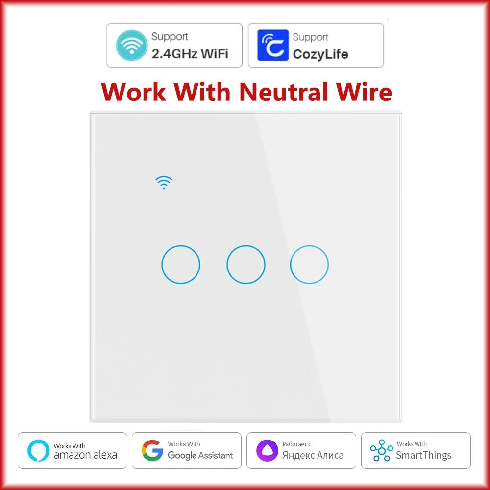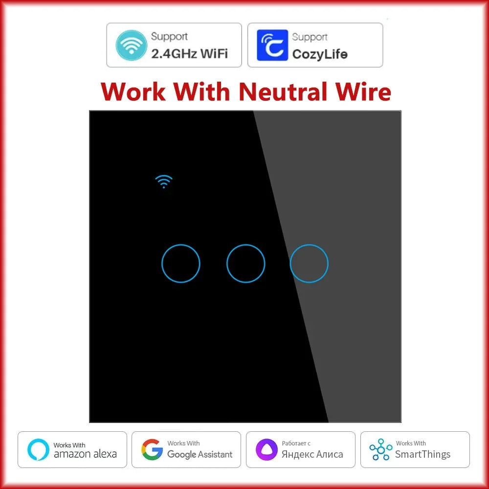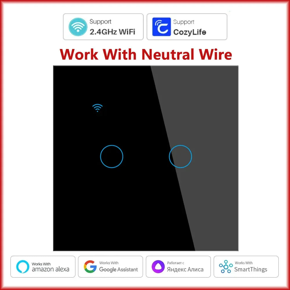 Cozylife WiFi Smart Switch EU Light Wall Touch Switch 220V Need Neutral Wire Smart Life Work with Alexa Google Home 1/2/3 Gang