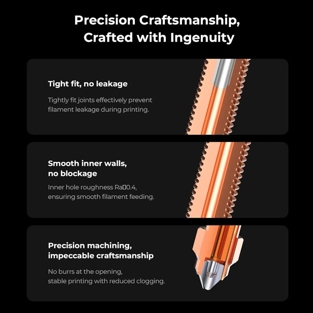 ☀High flow,supporting high-speed printing: Enlarged nozzle chamber, achieving a maximum flow rate of up to 32 mm³/s, and supporting high-speed printing at 600 mm/s.