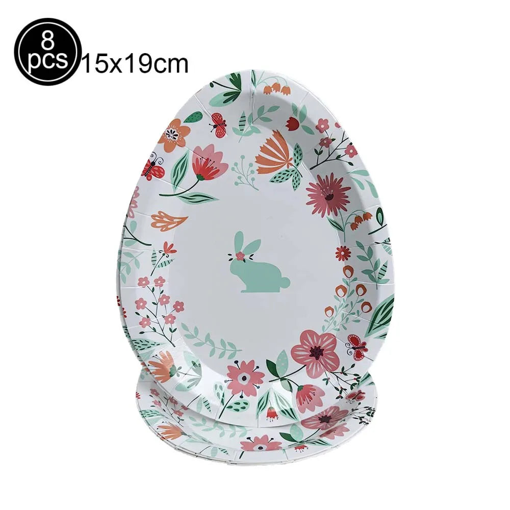 Easter Theme Disposable Tableware Cute Cartoon Rabbit Pattern Paper Plates Cups Napkins Kids Easter Party Decoration Supplies