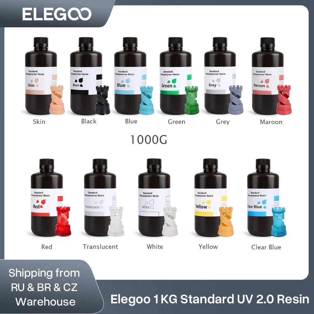ELEGOO photopolymer resin is compatible with the LCD 3D printers using the UV light source to cure models.