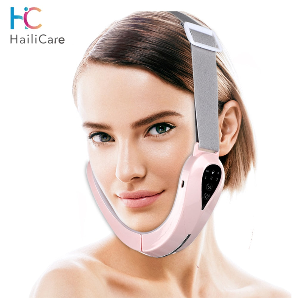 EMS Facial Lifting Massager Double Chin V Shape Lift Belt Red Blue Light LED Face Slimming Vibration Face Lift Devices Skin Care