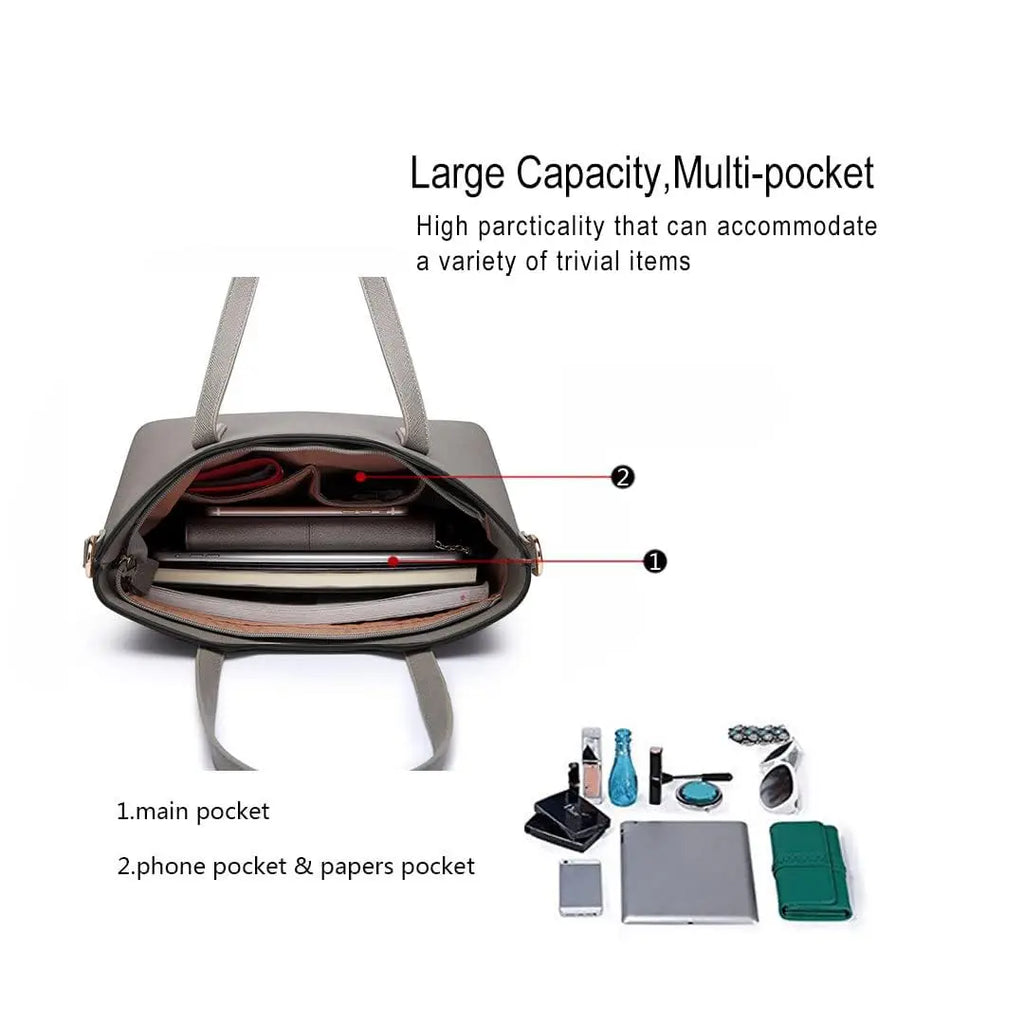 Storage space:The handbag provides ample space for A4 magazines, tablets, umbrellas and books. The shoulder bag is ideal for wallets, cosmetics, glasses and cell phones. The small bag is perfect for keys and small accessories to store everything neatly.