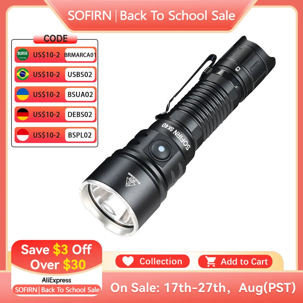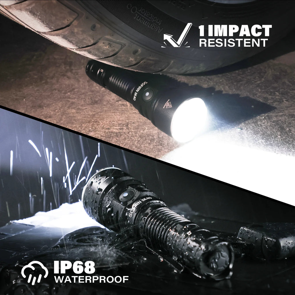 SOFIRN SK40 is equipped with 1*SFT70 LED, with a maximum brightness of 3200 lumens and an illumination range of up to 580 meters, which can easily meet the long-distance lighting needs of outdoor adventures, search and rescue missions, etc.