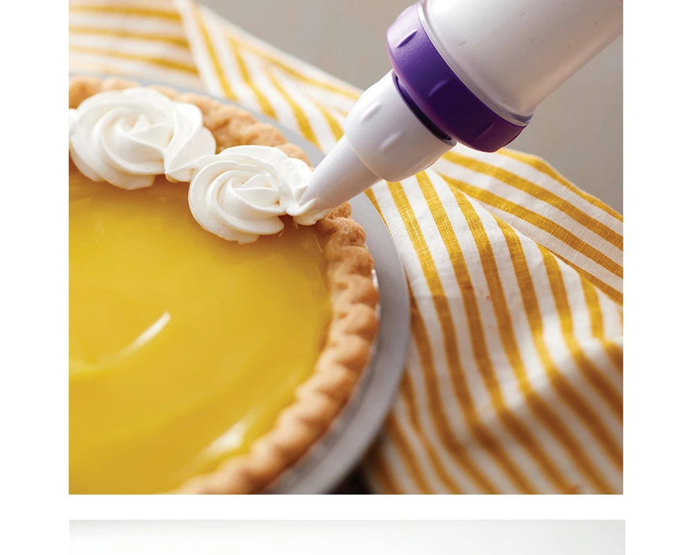 The Dessert Decorator Plus includes four decorating tips, a fill tip and two couplers and can be used with most standard tips