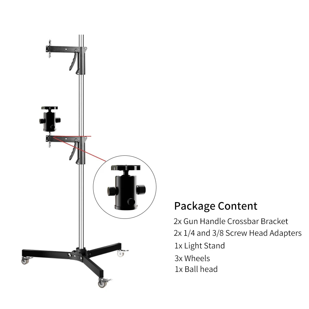 SH 63cm-190cm Gun Grip Light Stand 1/4 and 3/8 Screw With Wheels Folding Tripod For Studio Flash LED Light Softbox COB Light