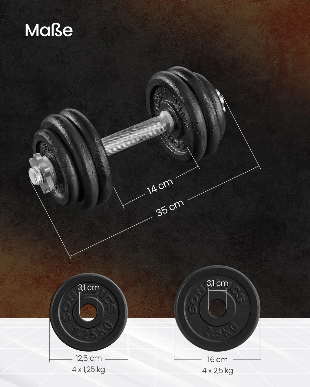 SONGMICS offers high-quality fitness accessories for all those who are working towards an ideal body shape. Our dumbbell set has been designed to provide you with an optimal training experience without time and space limitations.