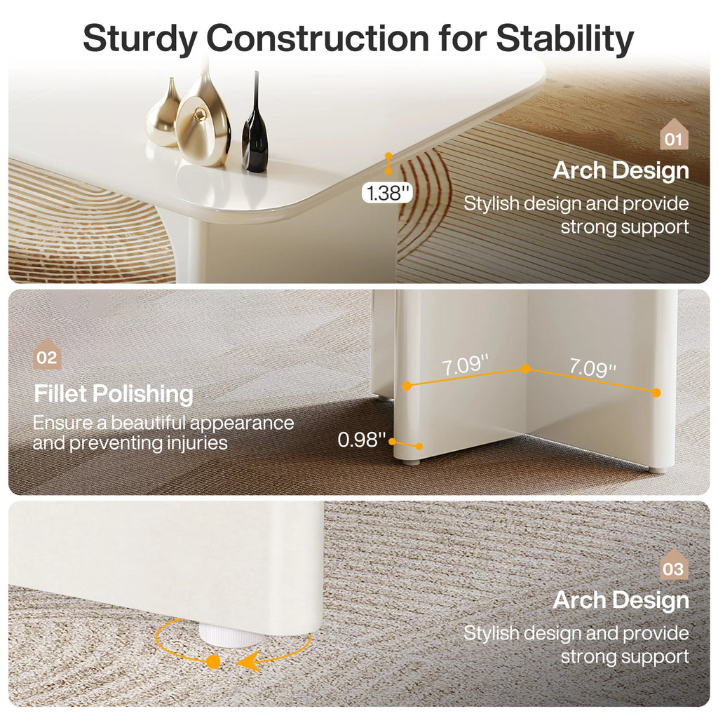 【Charming and Unique Design】: This computer desk sports a tasteful cream-white hue that brings a touch of elegance and serenity to any space. Its unique arch design underneath adds an artistic twist, making it not just functional but also a stylistic addition to your decor.