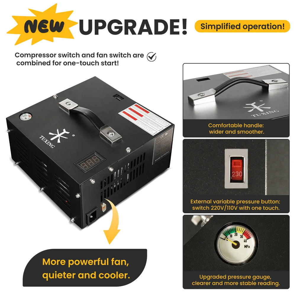 TUXING TXES061 4500Psi 12V PCP Air Compressor 300Bar High Pressure Compressor Portable Built-in Transformer Diving Tank Airgun