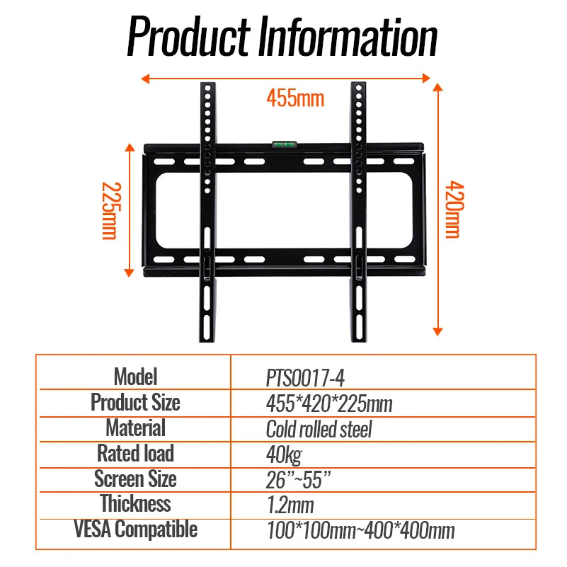 Universal TV Wall Mount Bracket for Most 26-55 Inch LED Plasma TV Mount up to VESA 400x400mm and 110 LBS Loading Capacity