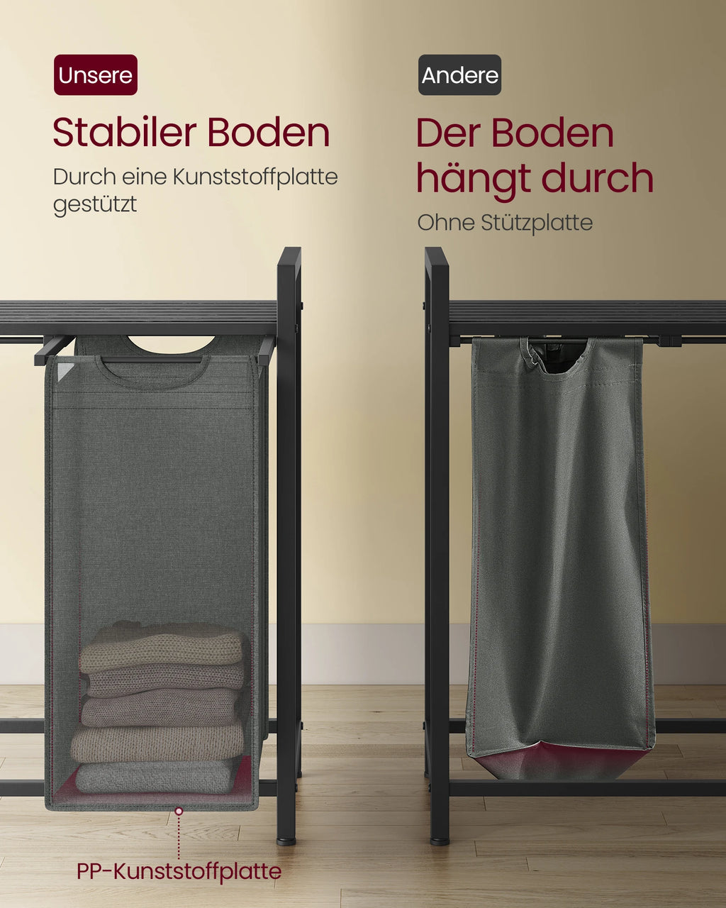 • [Robust, stable and durable]Solid 2x2 cm steel tubes, high-quality MDF panels-the laundry box is robust and resilient (shelf up to 30 kg). The bags are made of water-repellent Oxford fabric. The 4 adjustable feet increase stability
