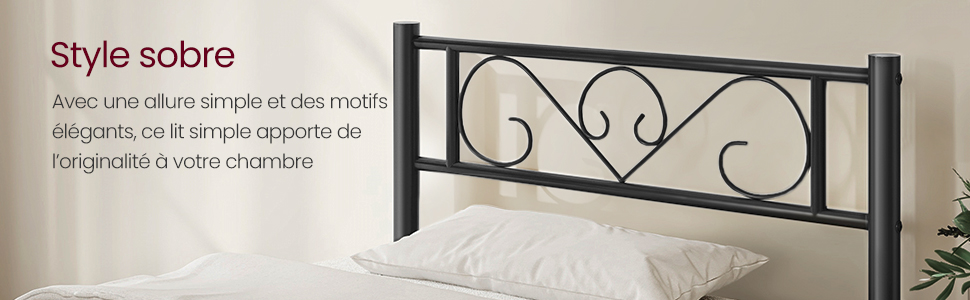Matériau durable Le cadre en métal traité par poudrage est robuste et durable pour conférer au lit une grande stabilité pouvant supporter jusqu'à 150 kg. |
