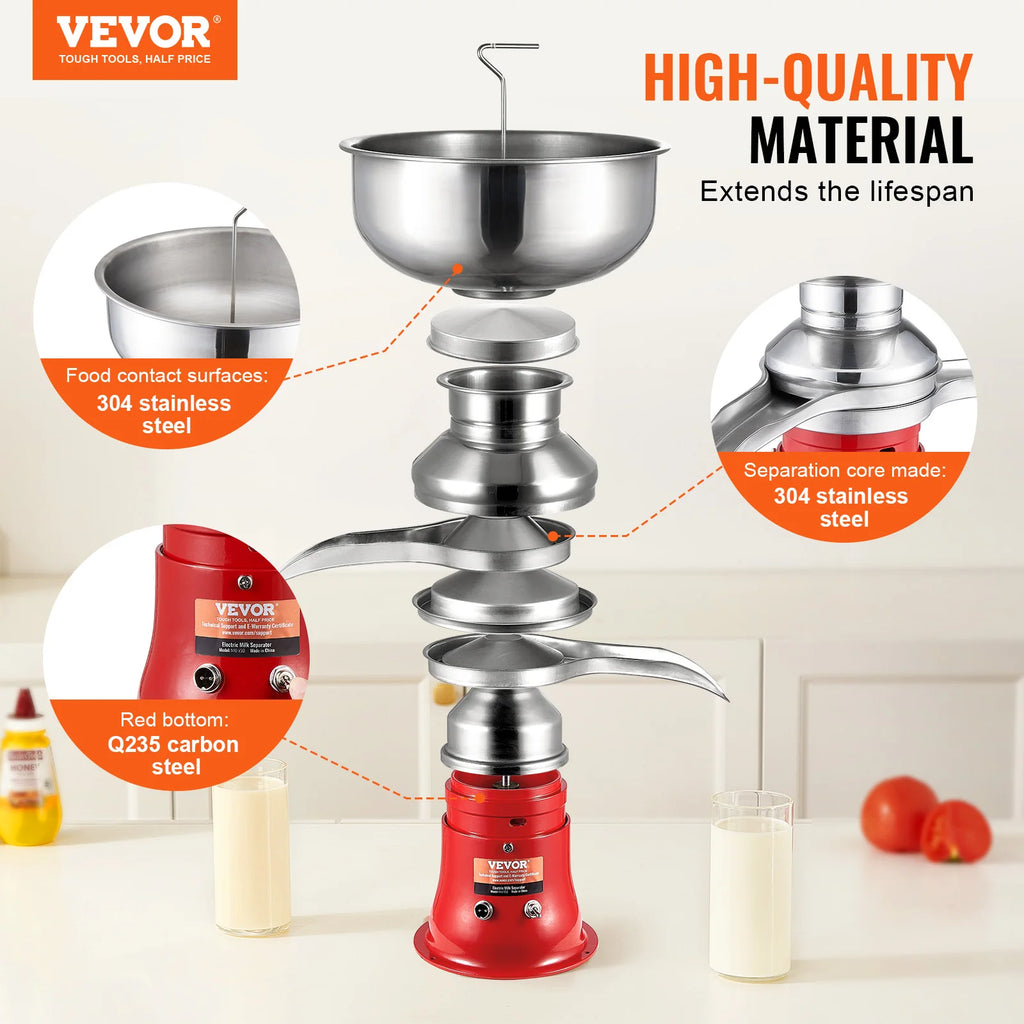 High Quality: The materials in contact with food are all made of 304 stainless steel, which is highly corrosion-resistant, sturdy, and durable, so you can confidently separate milk. The separation core is made of premium copper, and the red bottom is cast iron, ensuring stable and robust use.