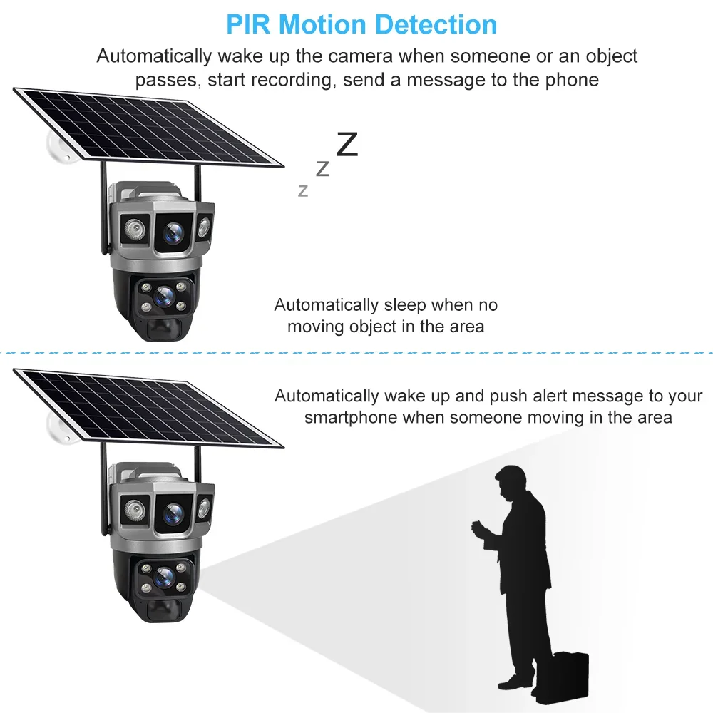Dual Lens Three Screens WIFI Solar Camera 12MP 10X Zoom CCTV Outdoor Automatic Tracking Humanoid Detection Support PTZ IP66 Cam