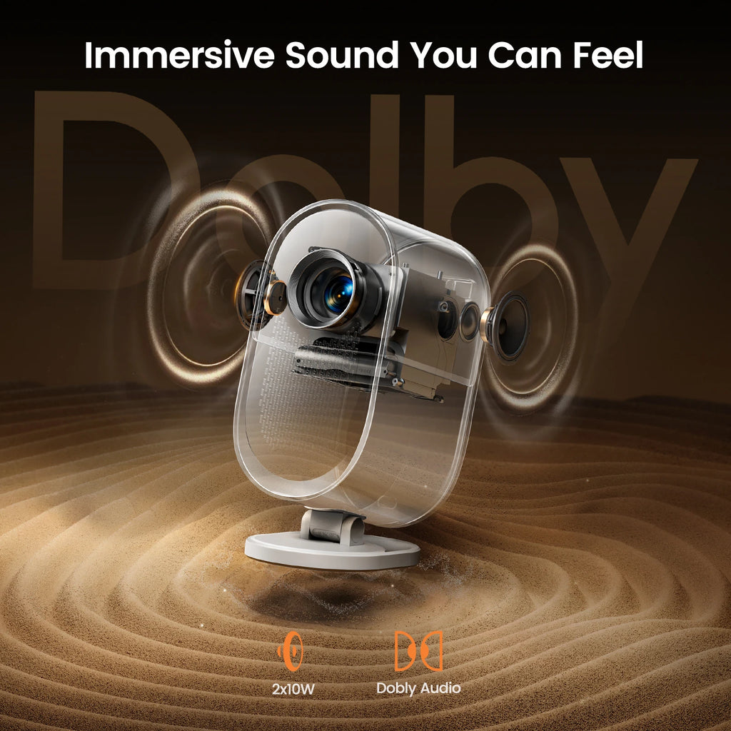 【Cinematic Dolby Sound & Two-way Bluetooth】With a major leap in audio quality compared to earlier models, The movie projector supports Dolby Digital and include dual 10W speakers, providing crystal-clear, dynamic surround sound. HDMI ARC compatibility enables direct connection to your home sound system, while two-way Bluetooth and standalone Bluetooth speaker modes allow wireless pairing with mobile devices or external speakers. Whether for a home theater setup or an outdoor movie night, the Projector delivers an immersive experience.