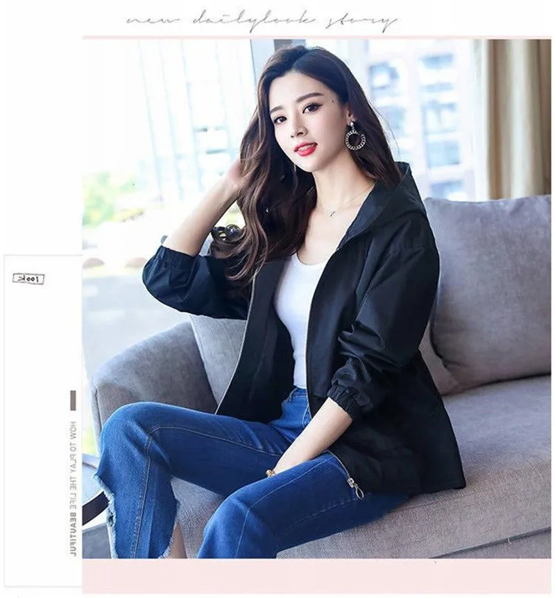 2020 New Women Jackets Autumn Windbreaker Female Long Sleeve Casual Hooded Jacket Zipper Lightweight Outwear Plus Size P713