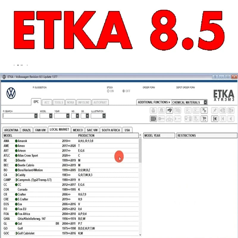 Latest version E T/K 8.5 V Group Vehicles Electronic Parts Catalog Support Cars ForV/W+AU//DI+SE//AT+SKO//DA