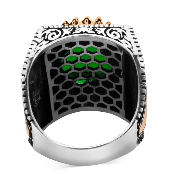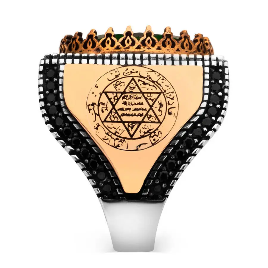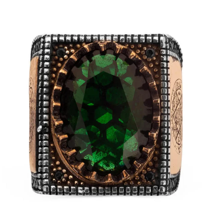 925 Sterling Silver Seal Green Zircon Stone Solomon Zircon Ring for Men Reliable Modern Fit Religious Modern Design