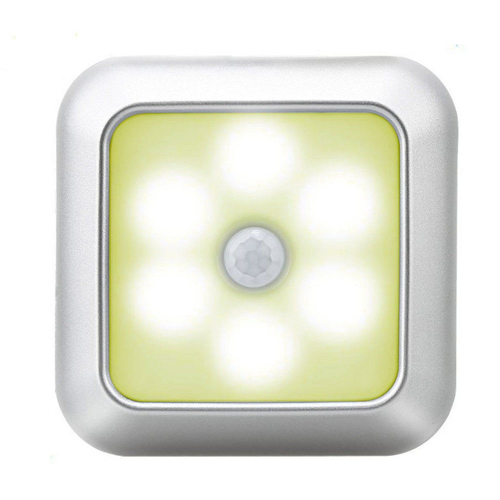 Battery Powered 6 LED Square Motion Sensor Night Lights PIR Induction Under Cabinet Light Closet Lamp Stairs Kitchen Bedroom
