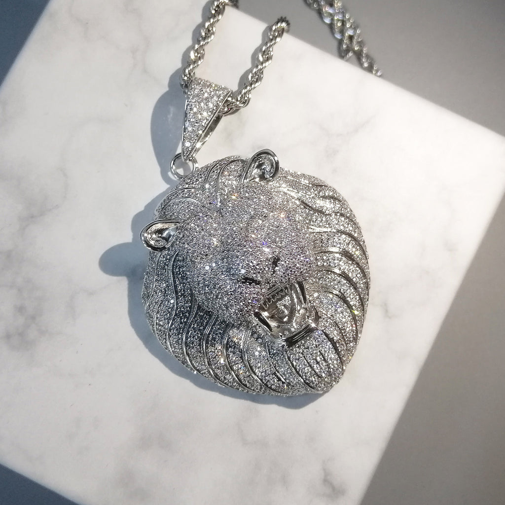 Bling Iced Out Necklace Micro Pave Cubic Zircon Lion Head Pendant for Men Women Gifts Luxury Hip Hop Jewelry