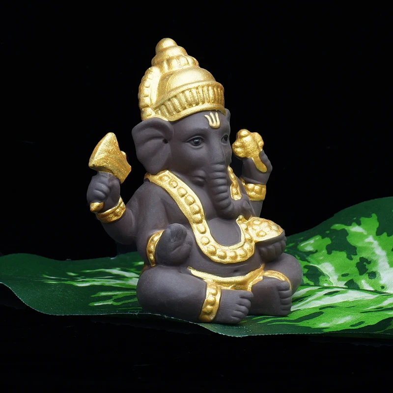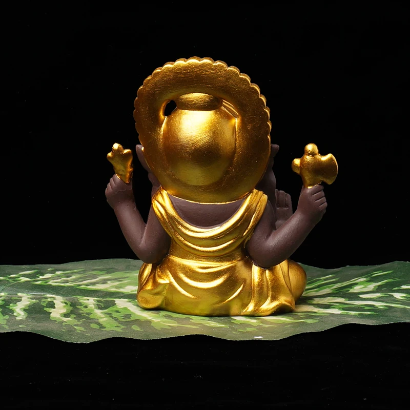 Pure natural purple sand, with golden hand-painted, fired at 1200 degrees, is the intersection of fire and soil, and the natural fusion of heaven and earth.The white porcelain elephant God shines in the light.