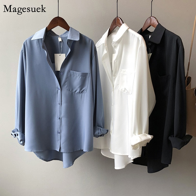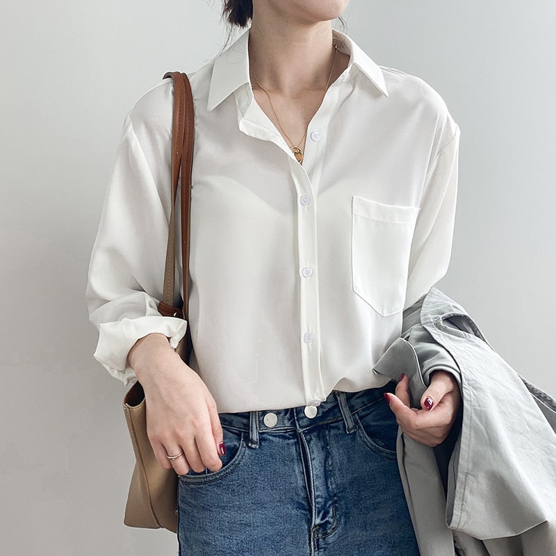 Loose White Shirts for Women Top Turn-down Collar Solid Female Shirts Casual Office Ladies Tops 2022 Spring Summer Blouses 11354