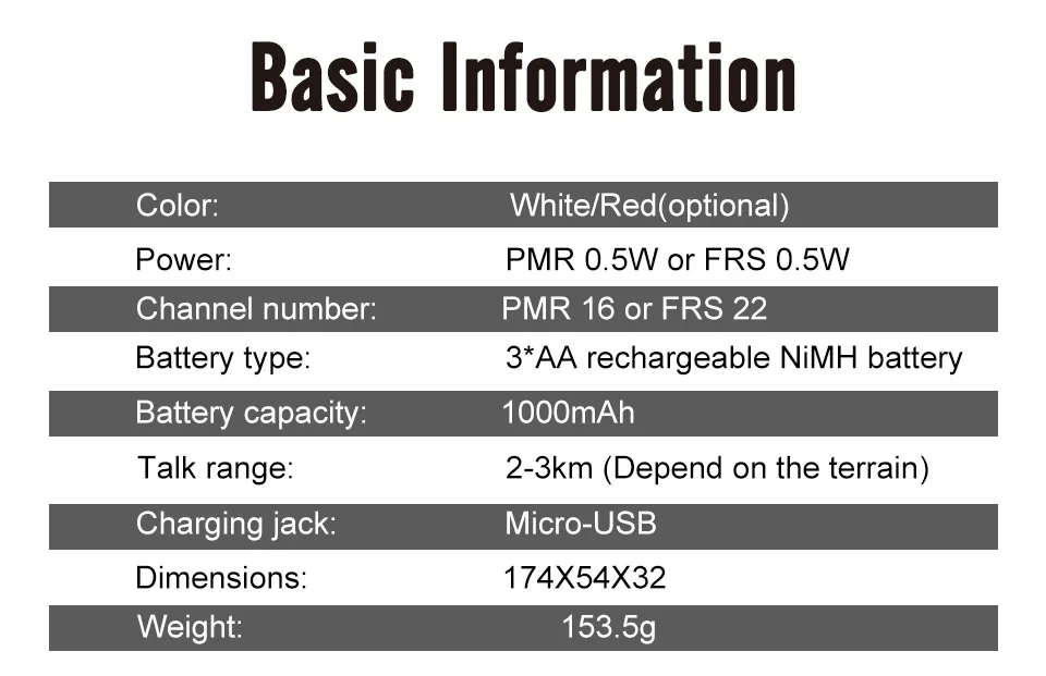 Frequency Range: PMR:446MHZ or FRS:462-467MHZ