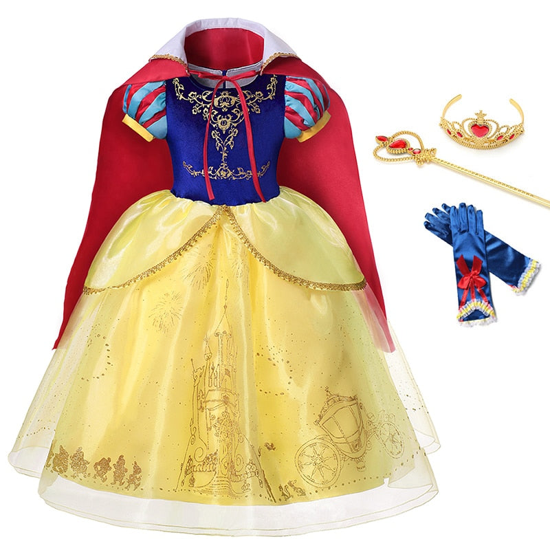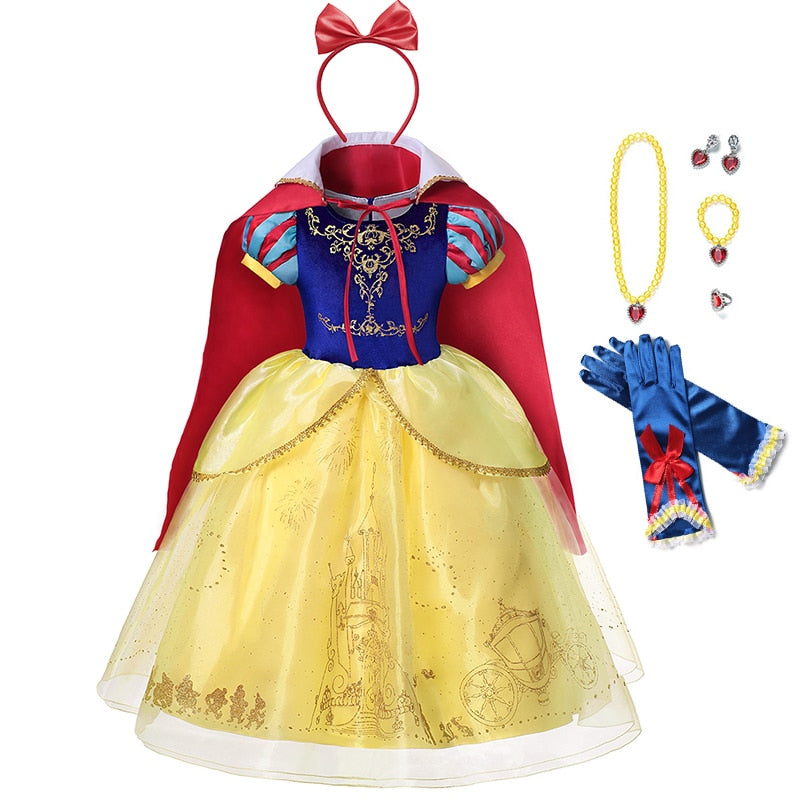 VOGUEON Girls Princess Snow White Costume Puff Sleeve Deluxe Prom Party Gown with Long Cloak Children Halloween Fancy Dress Up