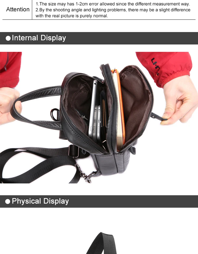 • Since the bag is made of genuine leather, there is a cowhide smell, but don't worry because thissmell will disappear after a while.