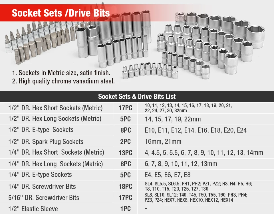 WORKPRO 108PC Car Repair Tool set Home Car Mechanic Tool Set Matte Plating Sockets Set Ratchet Spanners Wrench Socket Set