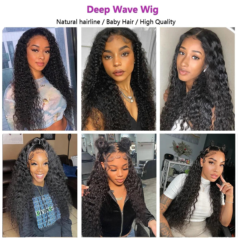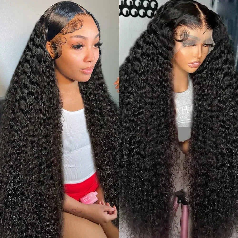40 46 Inch Water Curly Deep Wave 13x4 13x6 HD Lace Human Frontal Pre Plucked Brazilian Natural Remy Hair Black Wigs For Women
