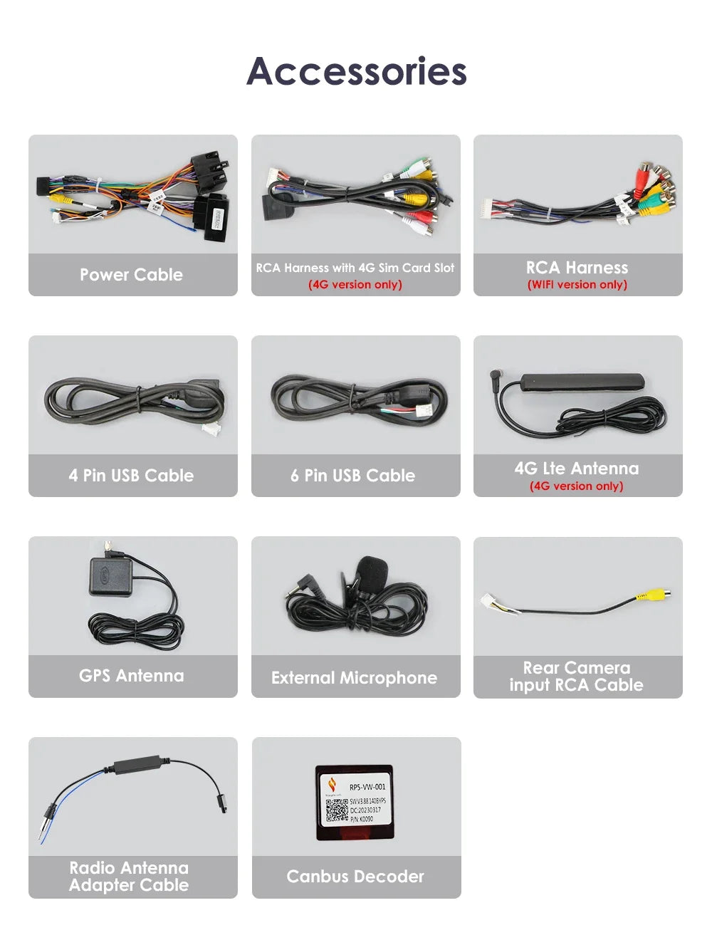 Standard Accessories: which ship with the head unit together(but please pay attension to the red words of accessory whether can get or not which depends on the item option you choose to buy it)