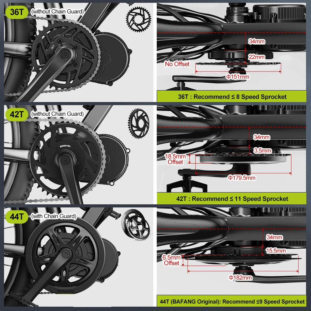 BAFANG Chainring for Mid Drive Kit : 36T 42T 44T 46T 48T 52T Compatible with BBS02 BBS02 48V 750W 500W 350W 250W Electric Bike Mid Drive Conversion