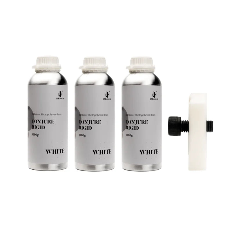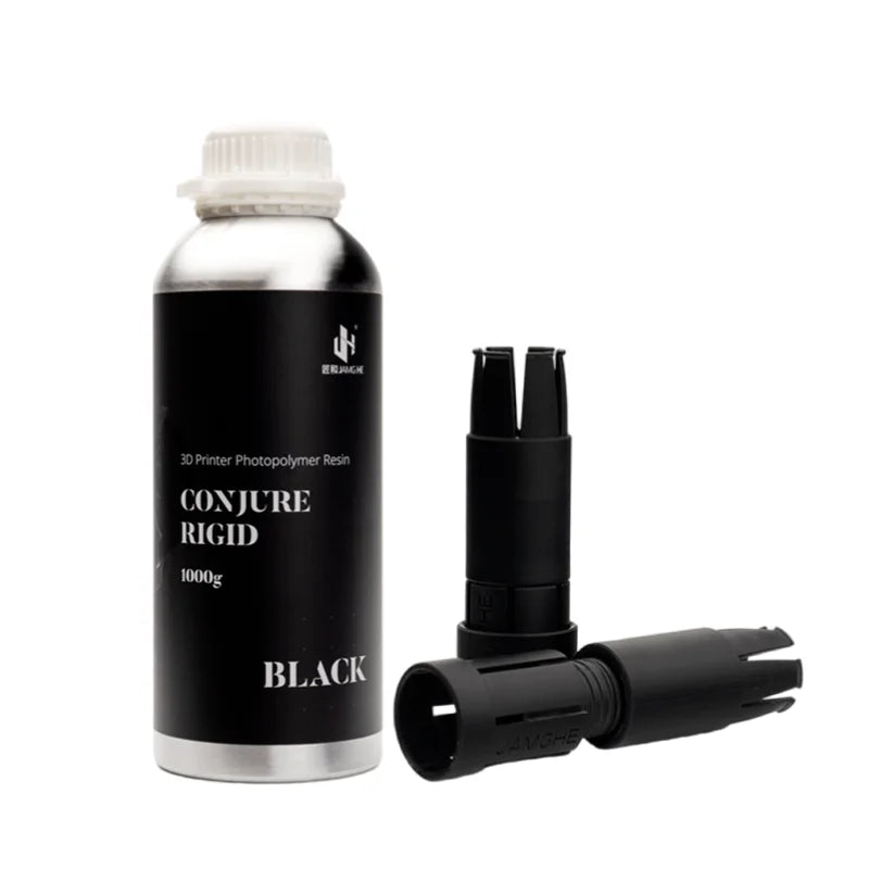 Conjure Rigid resin has a great shrinkage at 0.2%~0.7%. Resin printing is faster and get better surface compare to FDM printing When making prototypes of rigid parts that need to resist bending, The resin is not that durable like filament,for functional parts, or FDM