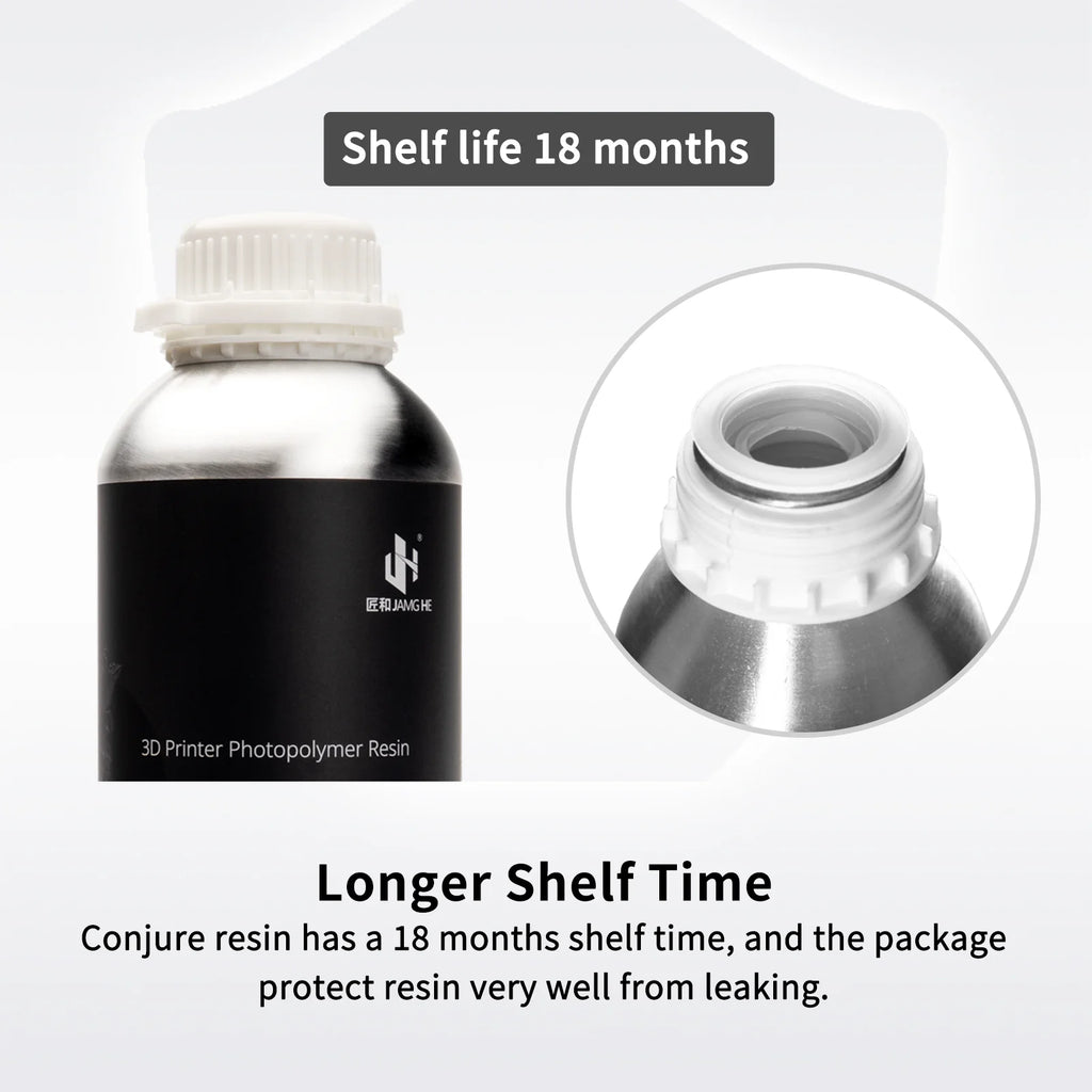 Conjure Rigid follows the ASTM D638 test, Conjure resin has an 18 months shelf time,