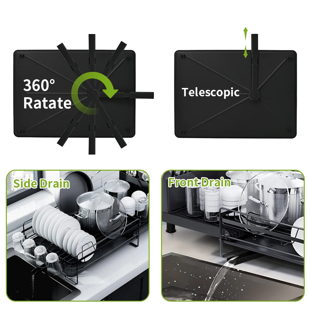 Dish Drainer Rack - Extendable Dish Drainer, Multifunctional Anti-Rust Dish Rack for Kitchen Counter, with Cutlery & Cup Holders