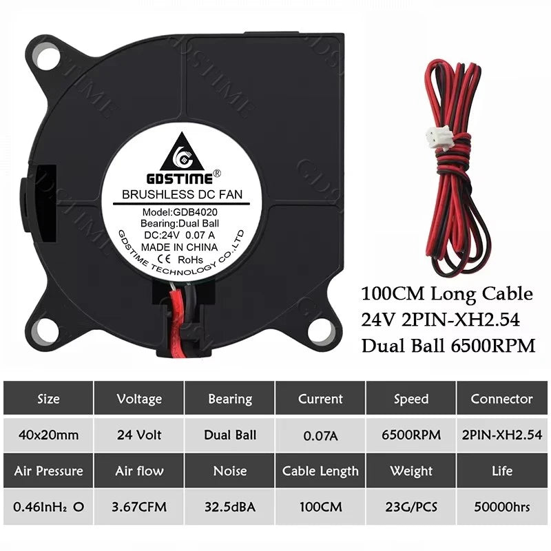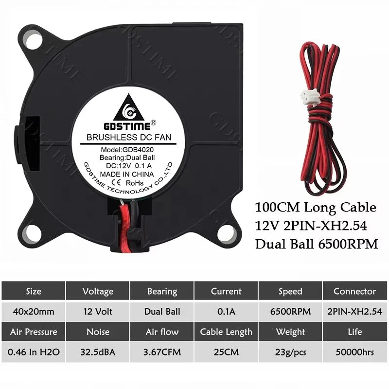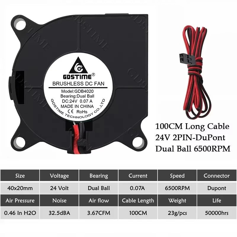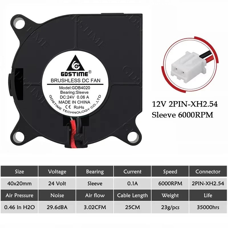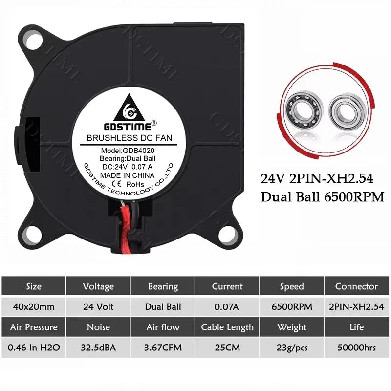 • 1PC 40x20mm Blower fan or 2Pcs 40x20MM Blower fan