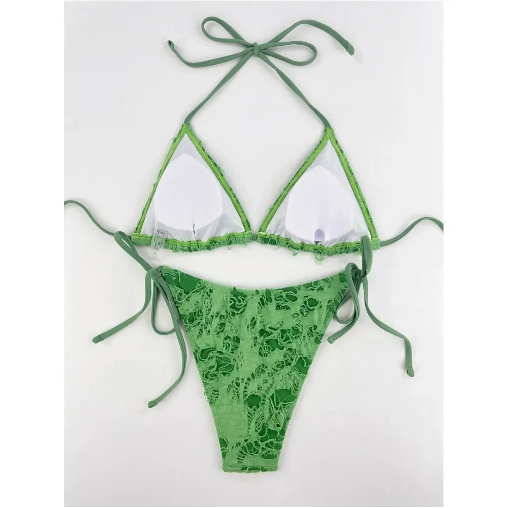 Gothic Grunge Swimsuit Distressed Micro Bikini Y2K Bathing Suits Halter Strappy Lace Up 2025 Trend Woman Punk New Beach Swimwear