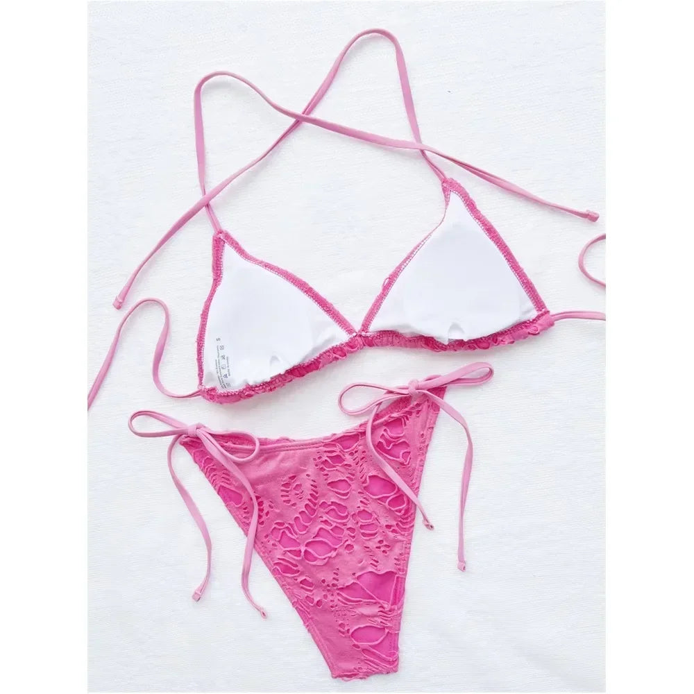 Gothic Grunge Swimsuit Distressed Micro String Backless Bikini Thong Halter Strappy Lace Up Y2K Swimwear Holes Ripped Swimsuits 2025 Trend Woman Goth Set Punk Bikinis Sets New Brazilian Beach Black Bathing Suits Biquinis Tangas Mujer