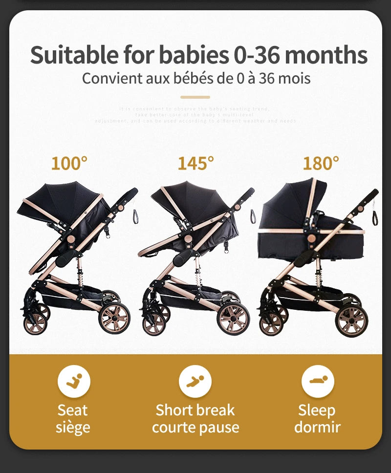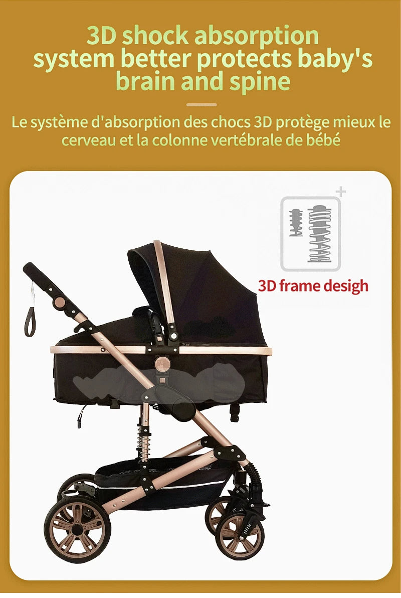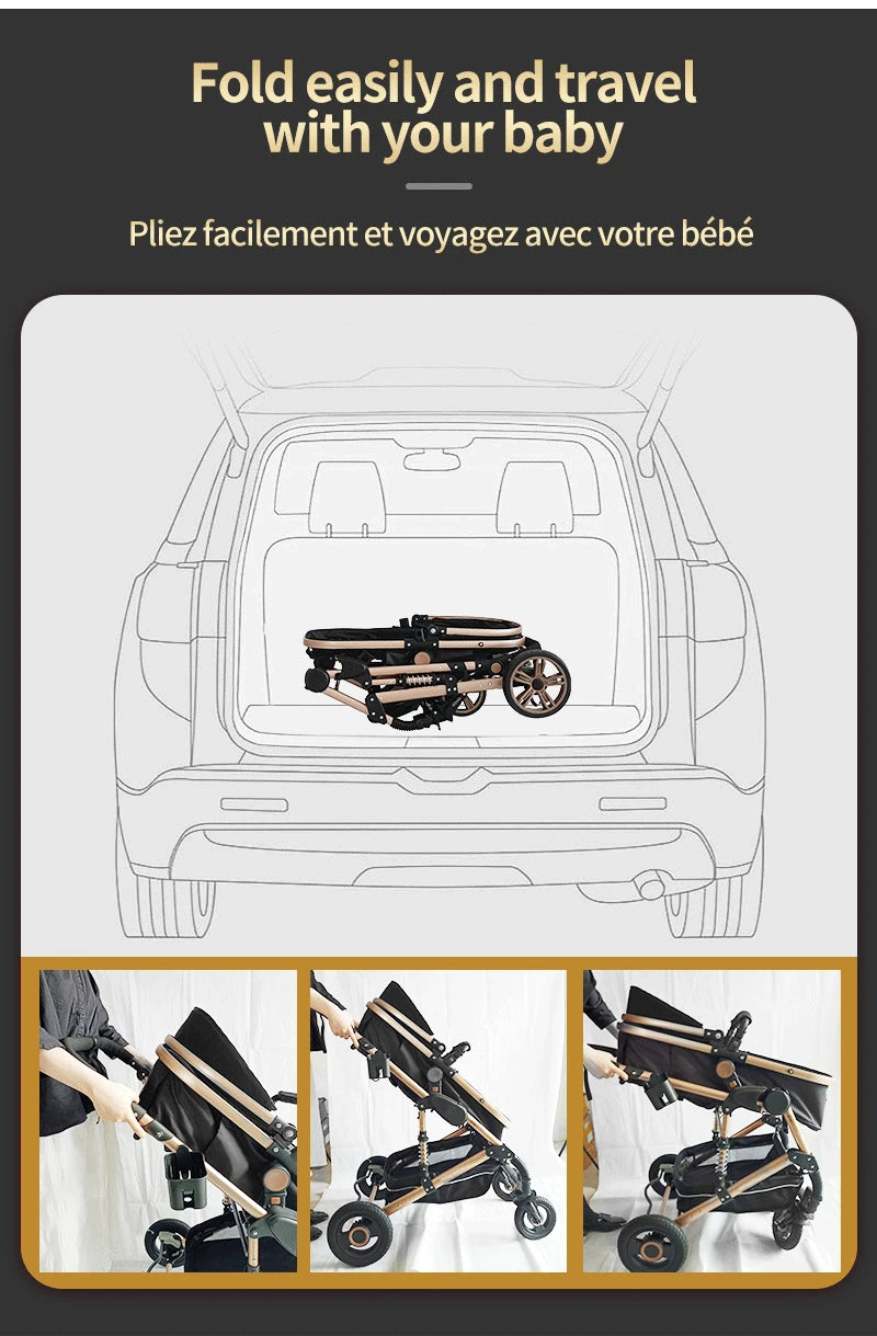 Luxurious Baby Stroller 3 in 1 Portable Travel Baby Carriage Fold Pram High Landscape Aluminum Frame Newborn Infant Stroller
