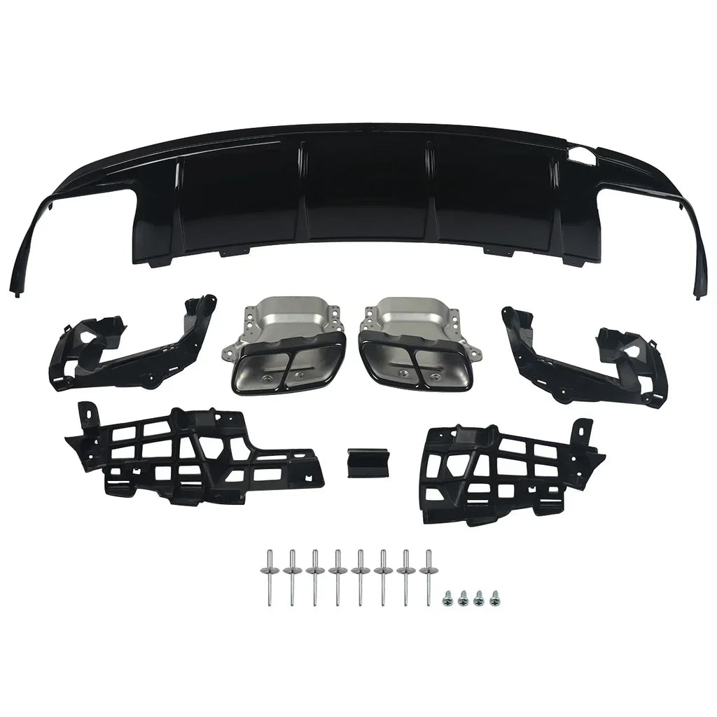 MagicKit For Mercedes Benz AMG W117 C117 X117 Rear Diffuser With Exhaust Tailpipes CLA260 CLA45 Rear Bumper Lip Gloss Black
