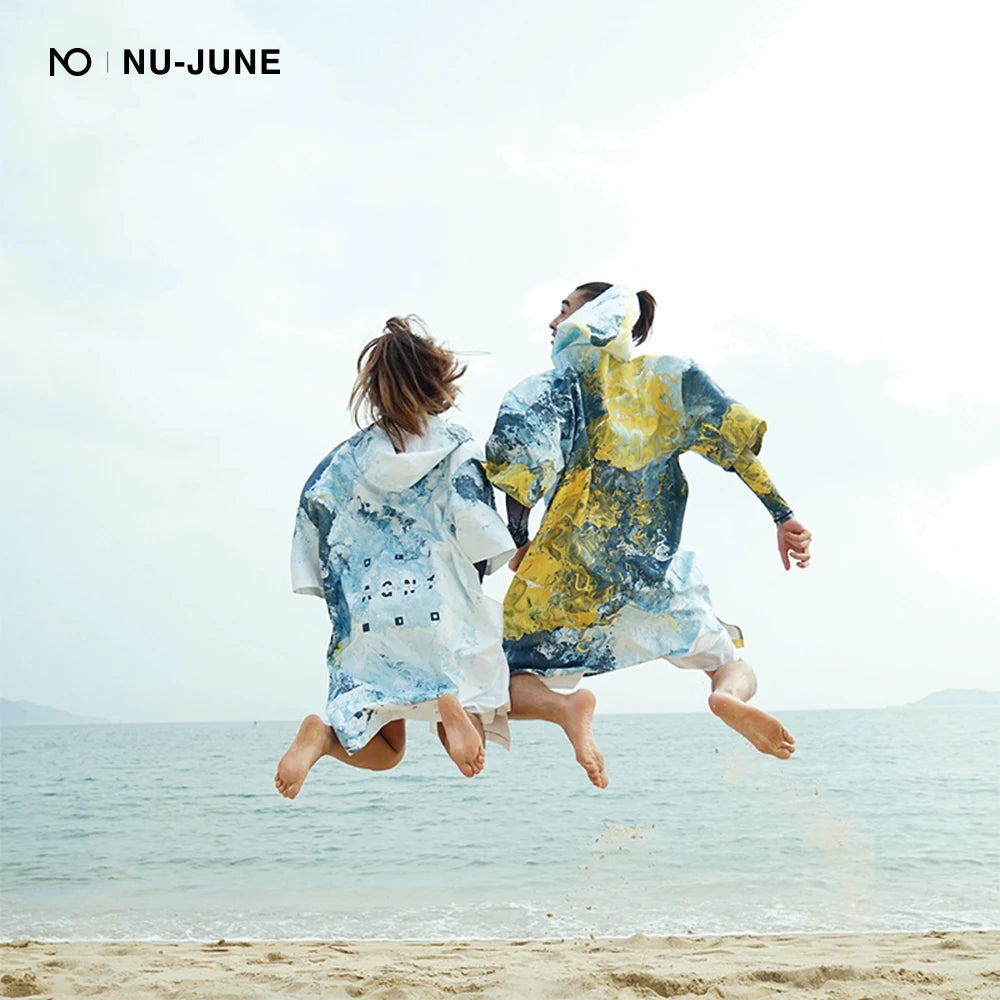 Nu-June Beach Hooded Changing Robe Swimming Towels Quick Dry Sunscreen Outdoor Adult Bath Towel Poncho Microfiber Surf Swimsuit
