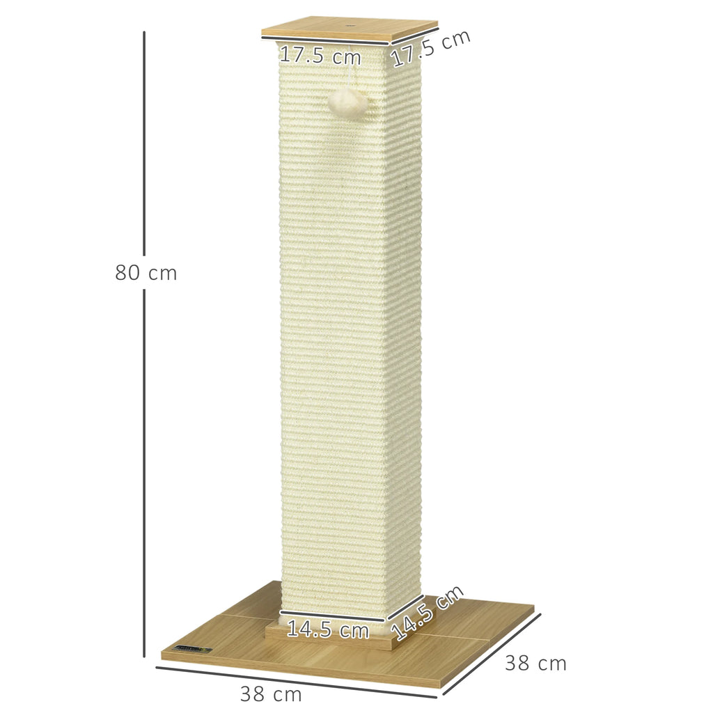 ● Dimensions: 80H x 38L x 38Wcm. Base: 38L x 38Wcm. Scratching post: 76H x 14.5L x 14.5Wcm. Surface: 1.5H x 17.5L x 17.5Wcm