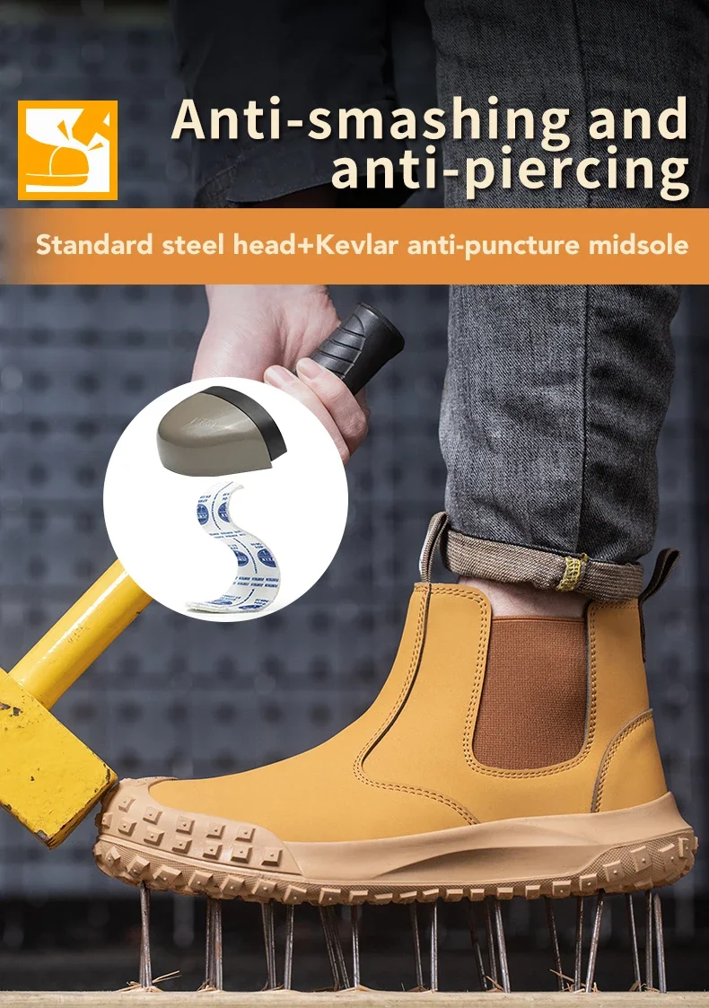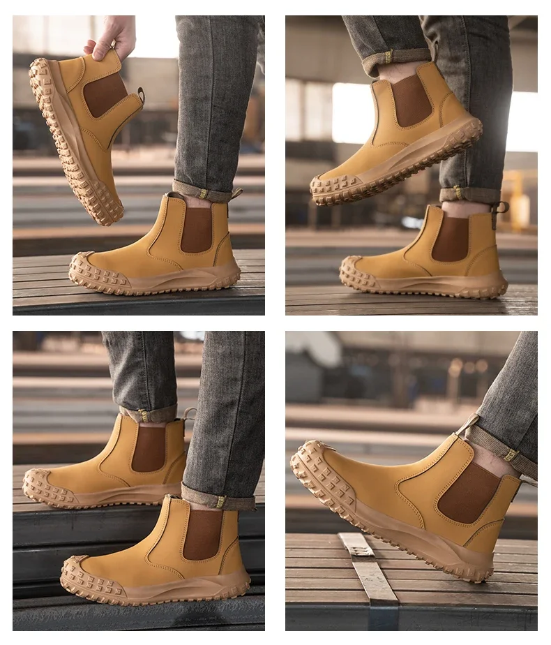 Quality Men Work Boots Anti-smash Anti-puncture Safety Shoes Chelsea Boots Anti-scald Welding Shoes Indestructible Men Boots