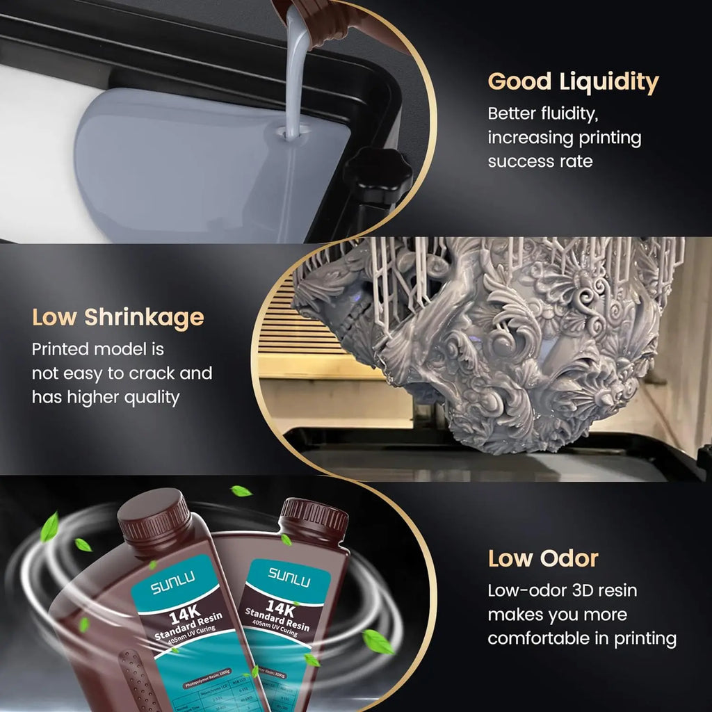 SUNLU 14K High Precision 3D Printer Resin 1KG, Standard 3D Printing Resin for Detail Printing Miniatures, Fast Curing 405nm UV Photopolymer Resin, Smooth Matte Surface, Better Liquidity, 1000G bottle