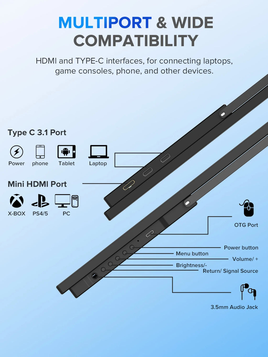 22 in monitor interface compatibility makes connecting easy! Whether it’s mini HDMI or USB-C, they can seamlessly connect with your monitor, unleashing your imagination for work and entertainment! Imagine the possibilities, making every moment you travel in the digital world full of surprises and convenience!