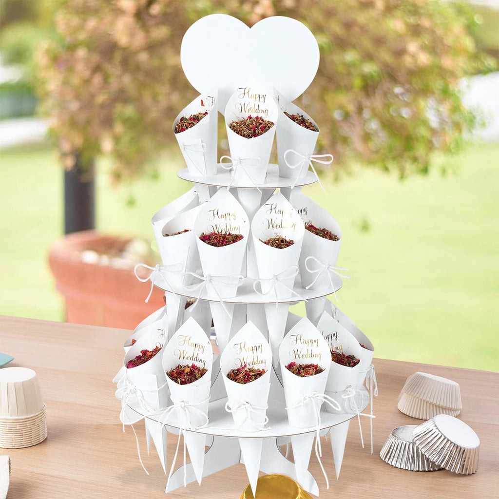 Wood/Kraft Paper Wedding Confetti Cone Tray Rustic Wedding Decoration Confetti Cones Stand DIY Holder Support Weding Supplies