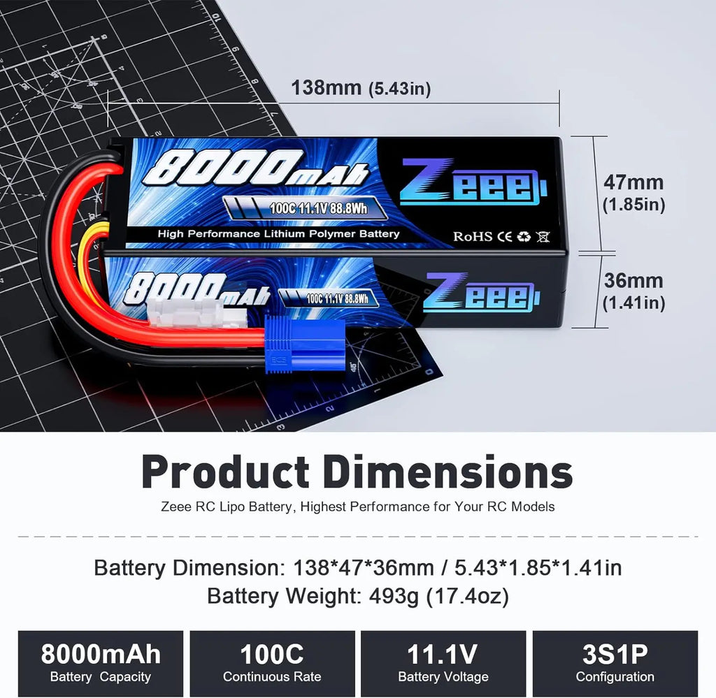 2pcs Zeee 3S Lipo Battery 11.1V 100C 8000mAh Hardcase with EC5/T Plug for RC Drone FPV Buggy Truggy for RC Car Racing Hobby Parts