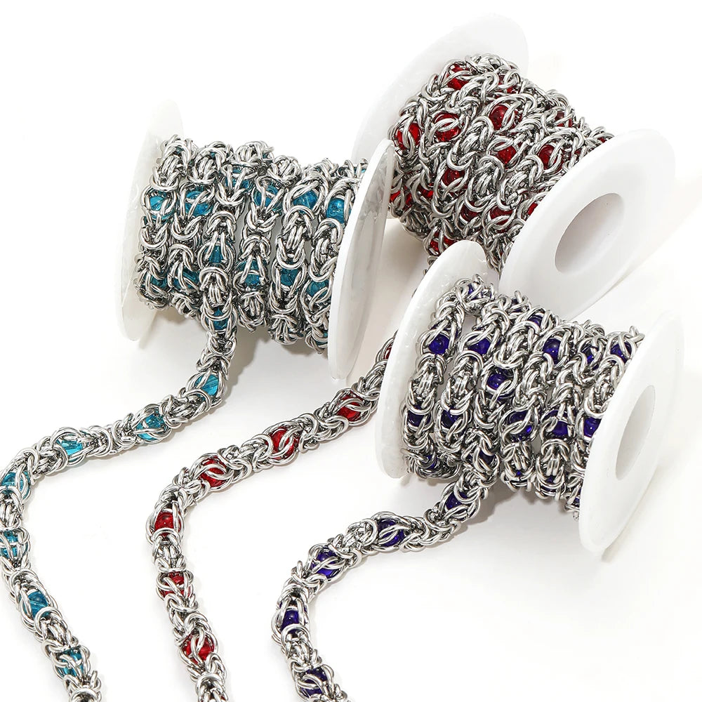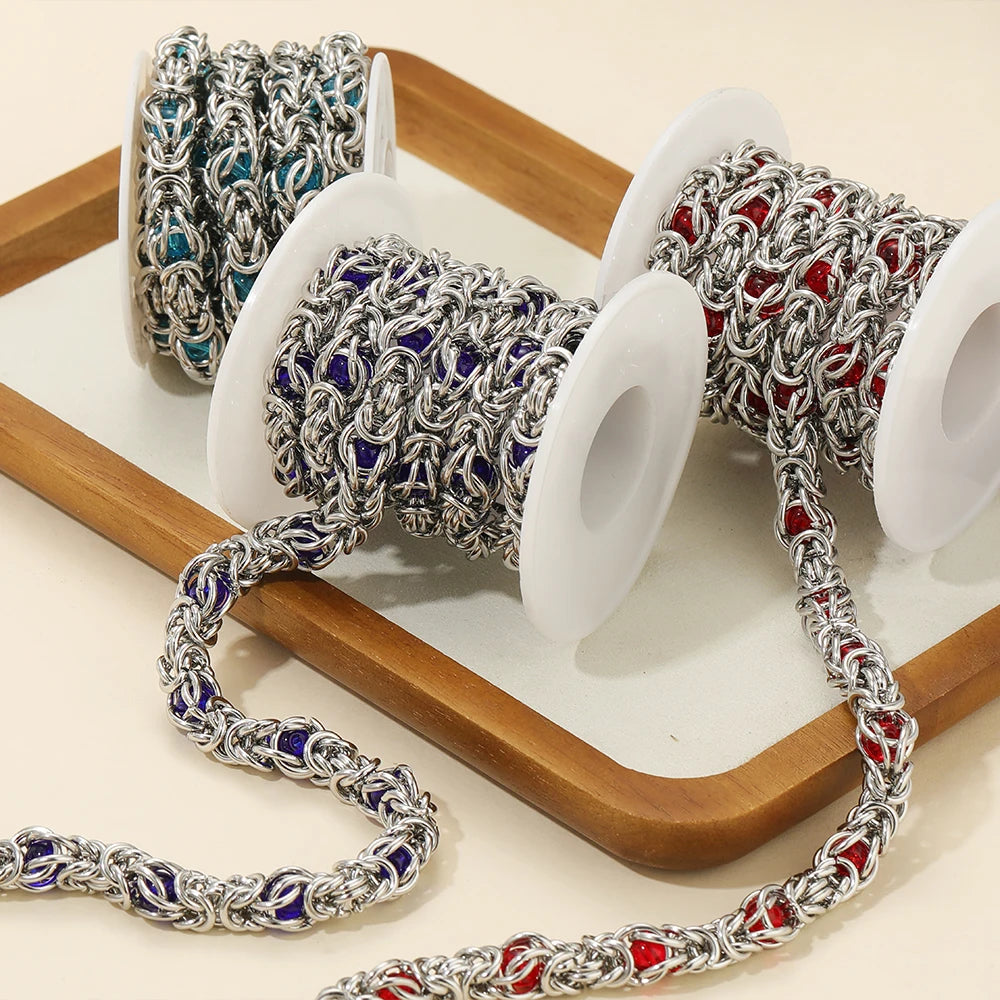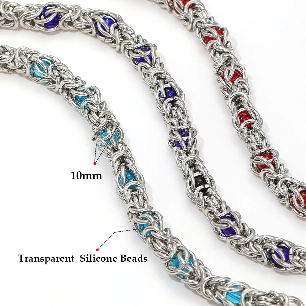 1 Meter 10mm Width Stainless Steel Chunky Knot Silicone Beads Chains for DIY Hip Hop Necklaces Jewelry Making Findings Supplies