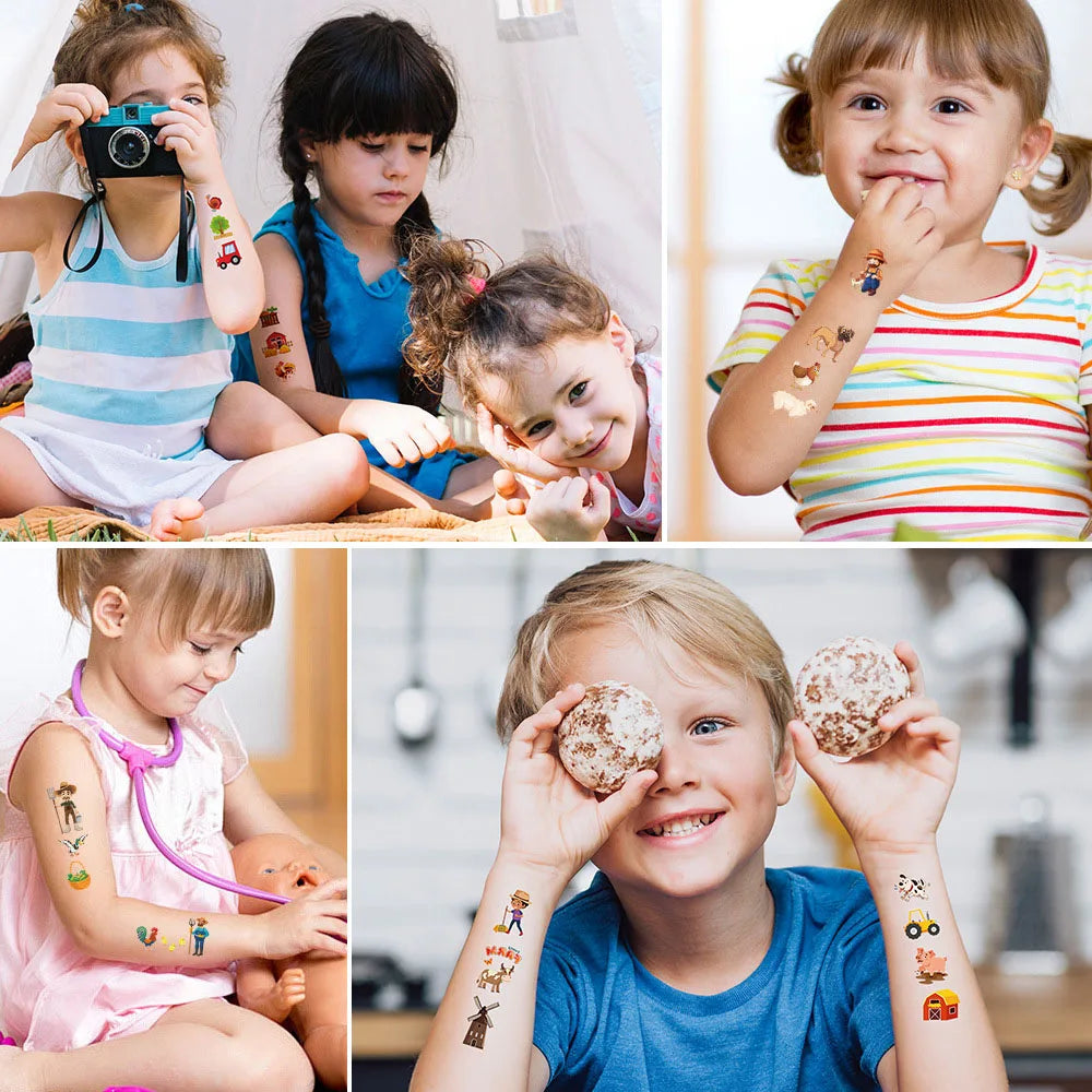 10 sheets Farm Party Temporary Tattoos Barnyard Animals Cow Horse Tractor Sheep Chick Tattoo Stickers Farm Animal Party Favors