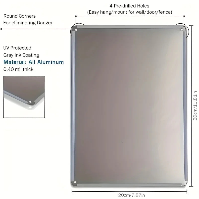 ?Size:12 X 8 inches / 20 X 30 Cm, 12x16 inches / 30x40cm ,5.6x8 inches /14x20cm Each Metal Sign Has Four Pre-Drilled Holes In The Corners For Easy Installation On The Wall.